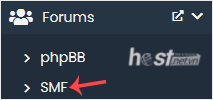 4. On the left side, locate the Forums category. Click on it and then on the SMF link that appears.