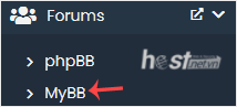 4. On the left side, locate the Forums category. Click on it and then on the MyBB link that appears.