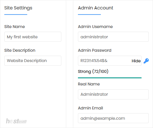 • Admin Username: Your new Textpattern username (for security reasons, do not use the administrator or the admin username).