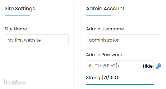 • Admin Username: Your new HTMLy username (for security reasons, do not use the administrator or the admin username).