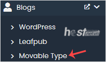 4. On the left side, locate the Blogs category. Click on it and then on the Movable Type link that appears.