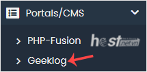 4. On the left side, locate the Portal/CMS category. Click on it and then on the Geeklog link that appears.