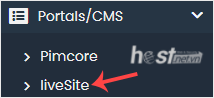 4. On the left side, locate the Portal/CMS category. Click on it and then on the liveSite link that appears.