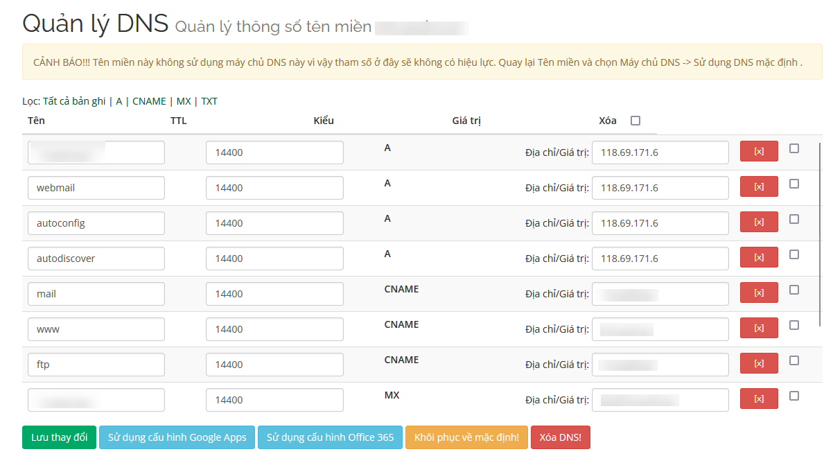 Để quản lý thông số DNS cho tên miền của bạn, thực hiện như sau