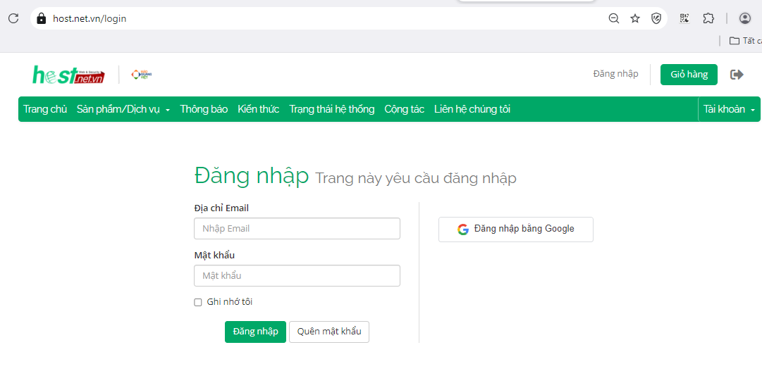 Bước 1: Truy cập trang quản trị host.net.vn của bạn.