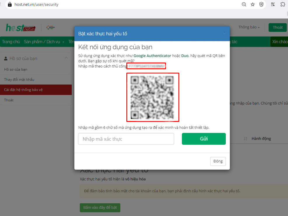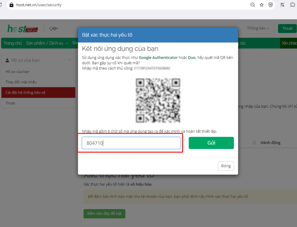 Bước 6: Tiến hành nhập mã này vào ô trống, sau đó nhấn gửi.