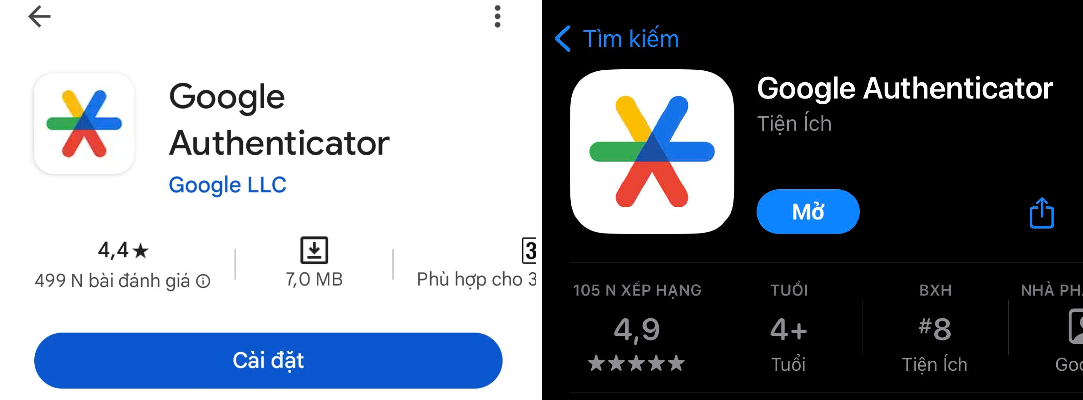 Bước 3: Tải ứng dụng Google Authenticator miễn phí trên CH Play hoặc App Store, bằng điện thoại của bạn.
